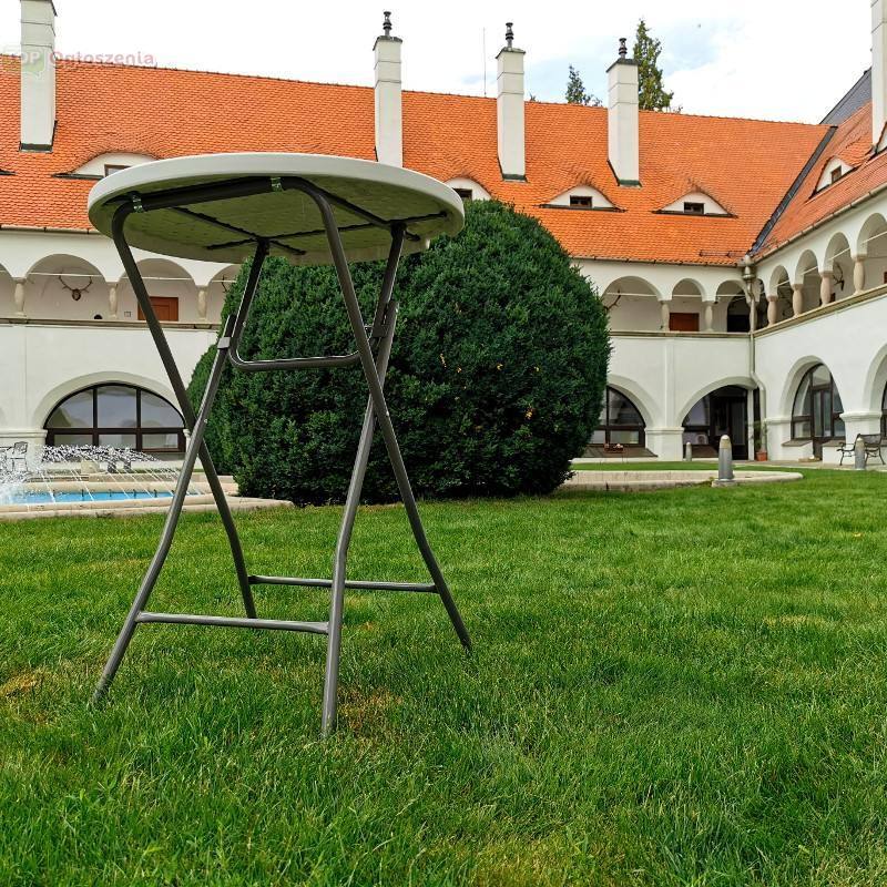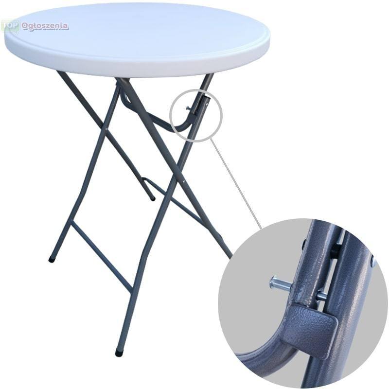 Wysokiej jakości stolik barowy o średnicy blatu 60 cm wykonany z wytrzymałego polietylenu stabilizowanego promieniami UV jest doskonałym towarzyszem wszędzie tam, gdzie ludzie spotykają się z dobrym jedzeniem i piciem. Wysokość stolika barowego 110 cm jest idealna do użytkowania w pozycji stojącej. Solidna stalowa składana konstrukcja tego stołu bistro sprawia, że ​​jest on stabilny i ma długą żywotność.