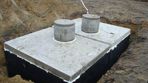 Zbiornik kompletny z płytą wierzchnią grubości 10 cm, kominkiem 0,5 m wysokości oraz włazem betonowym.