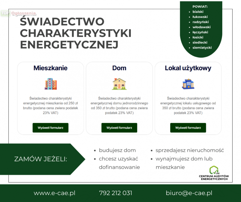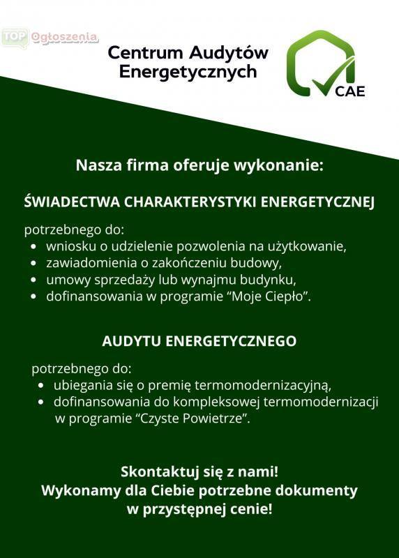 Centrum Audytów Energetycznych specjalizuje się w sporządzaniu: