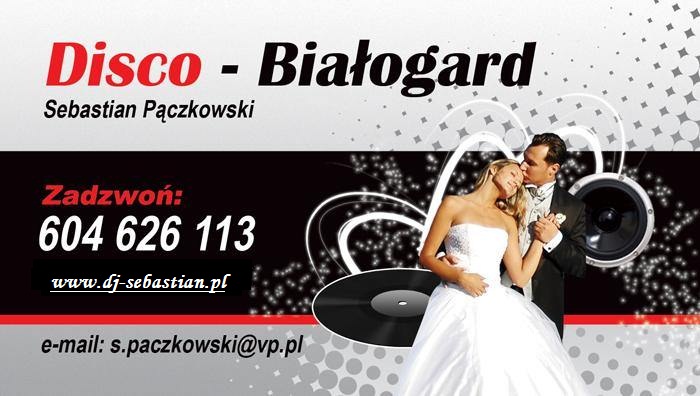 DJ na wesele zachodniopomorskie !!! Nazywam się Sebastian Pączkowski i jako DJ na Wesele prowadzę firmę pod nazwą Disco-Białogard.Na co dzień zajmuję się oprawą muzyczną przyjęć weselnych oraz imprez o charakterze rozrywkowym. Oprócz muzycznej oprawy imprez okolicznościowych zajmuję się również prowadzeniem imprez firmowych, bankietów oraz wszelkich imprez, na których potrzebne jest nagłośnienie, oświetlenie lub zawodowy wodzirej. Oferuję wiele ciekawych atrakcji, nowoczesnych zabaw, konkursów, między innymi dodatkowym urozmaiceniem Waszej imprezy może być np.konkurs karaoke! .