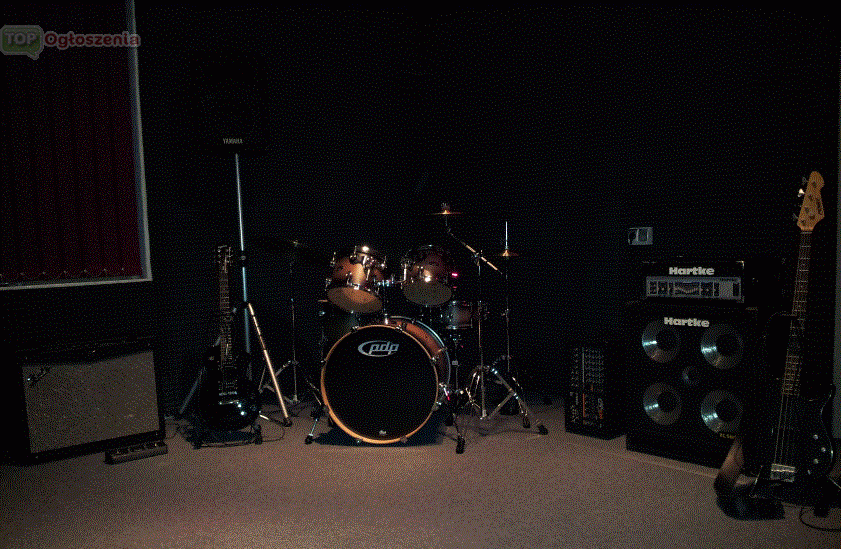 Sala jest w pełni wyposażona. Udostępniamy zespołom wysokiej jakości nagłośnienie oraz instrumenty. Znajdziecie u nas markowe wyposażenie ceniących się firm takich jak: Marshall, Hartke, Yamaha, Shure i wiele innych. Dodatkowo stale inwestujemy w zaplecze techniczne. Już niedługo możliwe będzie nagrywanie utworów w wersji DEMO.